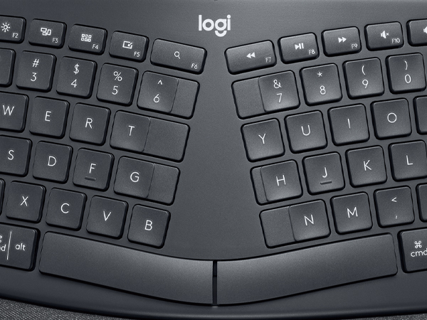 Logitech ERGO K860 - Wireless ergonomic keyboard with split buttons, wristwear and support for natural tap - Windows / Mac, Bluetooth, USB receiver, QWERTZ layout graphite
