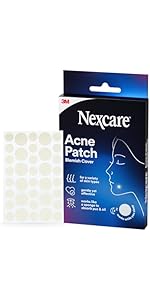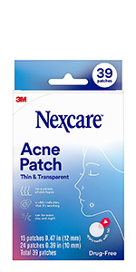 Nexcare Acne Covers cover up blemishes. A breathable, comfortable skin cover, Nexcare Acne Cover works like a sponge to absorb pus and oil from clogged pores so you can look and feel your best. This non-drying, transparent acne patch acts as a protective cover to reduce the urge to touch and squeeze acne without being overly visible. Plus, Nexcare Acne Covers are suitable for most skin types, so you can apply these acne pads to normal, dry, oily or combination skin. Gentle yet effective (1), acne skin care pads even work while you sleep to prevent scratching or picking at night unconsciously. Using a Nexcare acne patch is easy. Simply peel an acne pimple patch off the liner, and apply it to clean, dry skin. The oily secretion has been absorbed when the color changes from clear to white. From Nexcare, a brand trusted for first aid products, this pack contains 24 small and 12 medium acne covers. (1) Does not contain natural rubber latex and is non-medicated and drug-free.