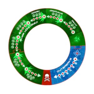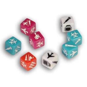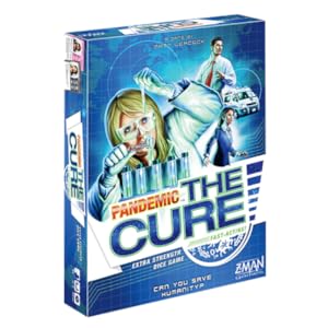 Pandemic: The Cure, a dice-based version of the popular Pandemic board game, sets up in less than a minute and plays in 30 minutes. As in the board game, four diseases threaten the world and it's up to your team to save humanity. You and your team must keep the world's hotspots in check before they break out of control, while researching cures to the four plagues. Players roll dice each turn to determine the actions available to them. They can fly and sail between the six major population centers of the world, treat disease in their current region, collect samples for further study, and exchange knowledge to help them in their goal of discovering cures. Each player takes on a different role that has its own unique set of dice and abilities - and players must take advantage of their specializations if they are to have any hope of winning the game. The Dispatcher, for example, can spend dice to fly others around the board, while the Medic is particularly adept at treating disease. Players can roll their dice as often as they like, but the more times they re-roll for the perfect turn, the more likely the next epidemic will occur. At the end of each turn, new "infection dice" are rolled to determine the type and location of newly infected populations. If any region on the board is infected with more than three dice of a given color, an outbreak occurs, spreading disease into an adjacent region. If too many outbreaks take place, too many people get infected, or the rate of infection gets too high, all the players lose. If, however, the players can discover the cures to the four diseases, they all win and humanity is saved!.