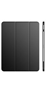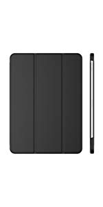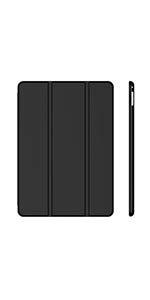 Magnetic smart cover supports automatic sleep/wake function. The tri-fold front cover can support iPad in two standing position for viewing and typing