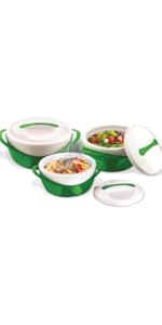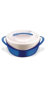 • EASY CARRYING From Kitchen to Table- COOL OUTER TOUCH Even With Hot Or Cold Foods Inside - 2 HANDLES with Locking Lid