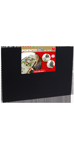 The Portapuzzle Board is the ideal jigsaw puzzle accessory to assist you when building, sorting and looking to carefully store your unfinished jigsaw puzzle. The Portapuzzle Board features a unique, specially designed non-slip felt keeps the puzzle pieces in place and also provides the ideal surface to puzzle on. The firm puzzling surface allows you to move the board, and rest it on a variety of surfaces inside and outside the house. The board’s lightweight design allows for easy transportation, but please ensure your unfinished jigsaw puzzle is secured on top and the board is kept flat.The Portapuzzle Board is suitable for most standard size 1,000 piece jigsaw puzzles that measure 68x49cm and can be used for one’s slightly larger – but please check the puzzle box to find out whether the jigsaw puzzle will completely fit on the Portapuzzle Board. All Jumbo product 1,000 piece jigsaw puzzles will fit perfectly onto the Portapuzzle Board.