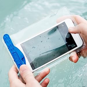 If youve ever wished you could bring your phone to the beach, on a boating trip, or even while snorkeling, this magnetic waterproof phone pouch now gives you that option. Foolproof and fumble-free, the double magnetic closure automatically seals with an audible snap for watertight protection. You can use your phone as if the pouch wasnt even there, so you can still listen to music, play a game, and watch a video without the need for a headphone or audio jack. The transparent TPU material also allows you to take crystal clear pictures and videos, even when youre underwater. You can also put other small items inside, such as credit cards, drivers licenses, keys, travel documents, money, memory cards, or other electronics such as MP3 players or cameras. Waterproof up to 100+ feet, the pouch is perfect for all kinds of water sports, including kayaking, canoeing, sailing, boating, surfing, stand up paddle boarding, snorkeling, swimming, and scuba diving. Its also great at the pool, beach, campground, waterpark, and on cruises. It can be used in wintertime recreational activities such as skiing, snowboarding, or snowshoeing. Even if its just a rainy or snowy day, this waterproof pouch will keep your belongings dry. Not only does it keep moisture out of the pouch, but it also keeps particles such as sand and dust out as well.