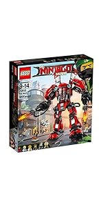 Get set for sizzling battle action with this huge and highly posable THE LEGO NINJAGO MOVIE mech. The Fire Mech features an opening minifigure cockpit, 2 shoulder disc shooters and 2 arms with non-shooting fire blasters. Includes 6 minifigures with assorted weapons—including Kai's katanas and Zane's bow and arrow—to offer even more thrilling role-play possibilities.