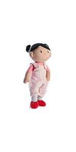 DURABLE & MACHINE WASHABLE: Made of soft polyester, Roya measures 10” tall and is fully machine washable and built to withstand everyday snuggles and adventurous play. A toddler doll made to last!