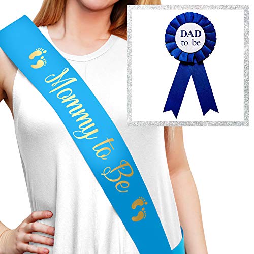"Mommy To Be" Sash and "Dad To Be" Pin - Baby Shower Decorations for Boy - Baby Shower Decorations, Welcome Baby, Baby Sprinkle