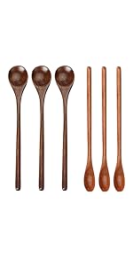 BEST SPOONS: With thick and strong handle, perfectly sanded, smooth, lightweight, strong. Won't get warm and melt like silicone utensils or crack like bamboo spoon.