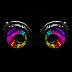 • YOU'RE GOING TO LOVE THESE: Immerse yourself in the world of possibilities with these programmable LED goggles. Infinite Portal lenses that stand out in the crowd for a one of a kind experience. Offering infinite customization options, the infinite portal lenses not only protect your eyes but also provide a canvas for showcasing a full spectrum of colors. The onboard memory ensures that your favorite patterns are preserved.