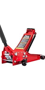 The Torin BIG RED AT84007R hydraulic garage floor jack can be used for general or heavy-duty industrial use and features a 4 ton (8,000 lb) capacity. With a lift range between 4" to 20", you can gain easy access under low-profile vehicles. It's constructed of durable, high-strength steel and has a powder-coated finish for rust resistance. The dual piston pump lifts loads 5 times faster than a single pump and is ideal for most cars, trucks, and SUVs. Equipped with (2) large steel casters and (2) 360-degree swivel casters for smooth maneuverability. In terms of safety, this Torin service jack even comes with a built-in safety overload system which prevents use beyond load capacity. Wide stance provides added stability under load. Meets ASME safety standards and includes a 1 year limited manufacturer.