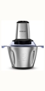 HOMESAY food chopper is equipped with a stainless steel bowl and 2.5L capacity. Compared with glass bowls, it is stronger, healthier and shock-proof, ensuring durability.