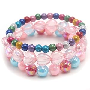 These cute and colorful beaded bracelets are the best choice for your little girls, perfect for birthday gifts, party favors, dress-up party, pretend play with friends, photograph, Christmas.