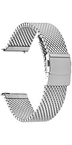 【Design】Fully polished stainless steel mesh watch band with brushed folding clasp, shining appearance, stylish and breathable. Quick Release Design(with 1.78mm dia quick release spring bars*4, two for directly using, two for spare), easy to fit and remove.