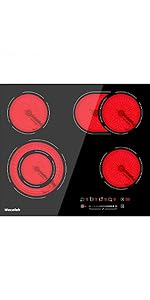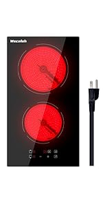 【Easy to Clean with Tempered Ceramic Glass Top】With a black smooth ceramic glass, the 2 burner cooktop looks very modern sleek. Black smooth glass, strong and high temperature resistant, smooth vitro ceramic surface, easy to clean. Just a gentle wipe with wet cloth it will become as good as new(Please wait until cooled)