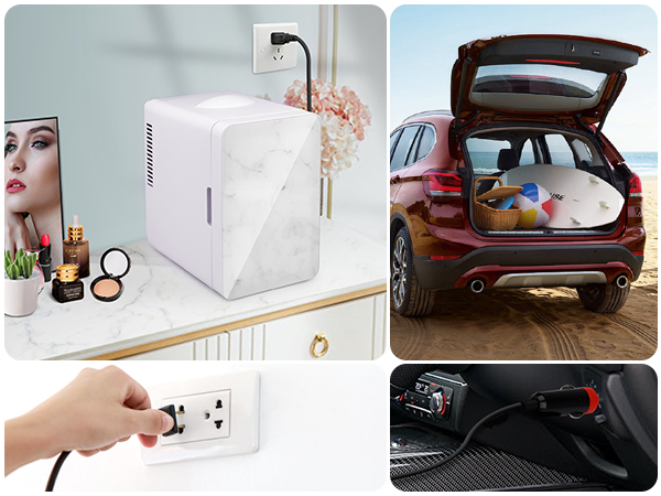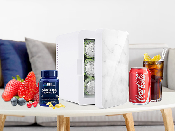 Skincare Fridge Multi Application - The small desk fridge can be taken anywhere to store Stores personal favorite beverages, snacks organic skincare, all-natural beauty products, serums, vitamins, and more.