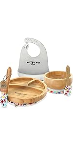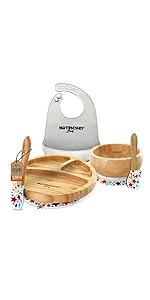Features: 3 Perfectly Portioned Compartments for Balanced Meals Suction Plates and Bowls for Toddlers Natural Bamboo & Silicone Naturally Hypoallergenic BPA, PVC, Lead, and Phthalate Free Non-Slip and Stay-Put Design Ergonomic Handle Fits Most High-Chairs Easy to Clean Suitable for Children Aged 4-72 Months Food Grade Silicone Tip, Gentle on Tender Gums Shorter and Wider Spoon Easier for the Child to Feed Themselves What's in the Box: Bowl with Silicone Suction Plate with Silicone Suction (2) Spoon with Silicone Head Bamboo Cup Technical Specs: Construction Materials: Natural Bamboo and Silicone Age Recommended: 4 Months to 72 Months Silicone Spoon Dimensions (L x W x H): 5.9' x 0.98'' x 0.43'' -inches Bamboo Plate Dimensions: 7.09'' x 7.09'' -inches Bamboo Bowl Dimensions: 4.72'' x 4.72'' -inches Cup Dimensions (L x W x H): 2.9'' x 2.9'' x 3.54'' -inches Sold as: 1 Weight: 1.06 lbs.