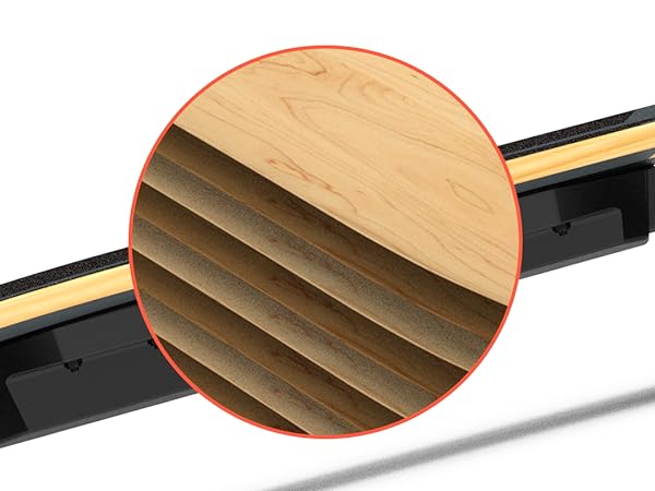 MEEPO V5 features a widened deck and premium Canadian maple wood material that absorbs shock for a comfortable riding experience.