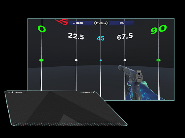 Train for perfect aim with the ROG Hone Ace Aim Lab Edition and the Aim Lab X ROG 360 task. The latter is an interactive space to improve your aim in all directions. The measurement markings on the mousepad help you quantify wrist and forearm movements while moving the crosshair onscreen.