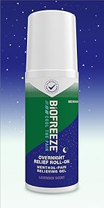 Ease your aches and pains with Biofreeze Overnight pain relief roll on. Our fast acting, long lasting, cooling menthol formulation delivers powerful penetrating pain relief for sore muscles and joints, simple backaches, arthritis, strains, bruises and sprains. Biofreeze pain relief roll on gel is well-suited for mess-free application via roller ball on small and large muscle areas. This convenient, 2.5 fl oz Biofreeze roll on is TSA-friendly and perfect for on-the-go pain relief. Whether you need a fast acting formula to target your knee pain, neck pain, shoulder pain, hip pain, arthritis pain, or pain during muscle recovery, look no further than Biofreeze.