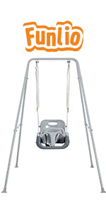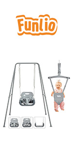 FUNLIO Baby Jumper with Stand for 6-24 Months, Infant Jumper for Indoor/Outdoor Play, Toddler Jumper for Baby Girl/Boy, with Adjustable Chain, Easy to Assemble & Store (with Stand) - Grey