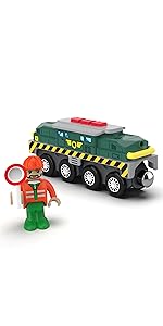 The power train run automatically on the wooden tracks that working with all major brands railway system, compatible with Thomas & Friends, Brio, Chuggington, Kidkraft and more.