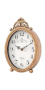 Abdurey Small French Retro Decorative Wall Clock, Antique Gold Vintage Oval Style,Silent Battery Operated Boho Decor Wall Clocks for Farmhouse,Kitchen,Bedroom,Bathroom(10.4" H x 6.7" W)