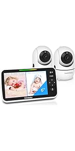 • Enlarged Screen of HelloBaby HB6550 Baby Monitor & Perfect Service: #1 Brand, Newest model, #1 Service, the Larger 6'' Screen - that’s HB6550Plus. Easy to use, clear video, adjustable lullabies, large split screen, night vision, 150 country languages, room temperature sensor, and feeding timer to give moms a reminder to feed their babies at night! Using our HD baby monitor makes the entire parenting process happier and convenient. 1 Year Guarantee! Trust in the professional service provided by the #1 sales team.