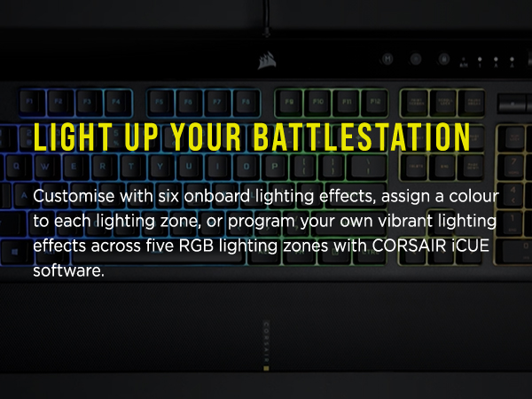 Dynamic RGB Backlighting: Light up your desktop with six onboard lighting effects, assign a colour to each lighting zone, or program your own vibrant lighting effects with CORSAIR iCUE software
