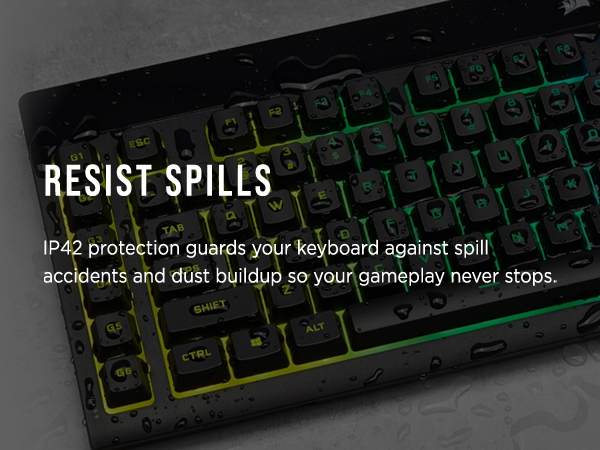 Dust and Spill-Resistant Design: IP42-rated protection guards against accidents so your gameplay never has to stop