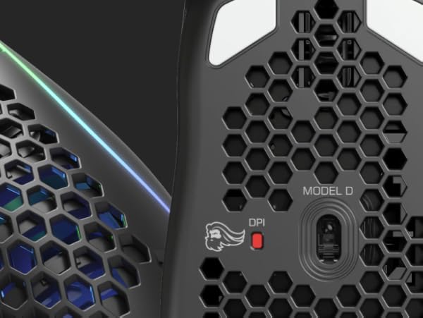 Press to instantly adjust mouse sensitivity (DPI) on-the-fly without opening software. The Model D comes with 4 pre-defined DPI settings: 400, 800, 1600, and 3200.