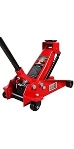 The Torin BIG RED AT84007R hydraulic garage floor jack can be used for general or heavy-duty industrial use and features a 4 ton (8,000 lb) capacity. With a lift range between 4" to 20", you can gain easy access under low-profile vehicles. It's constructed of durable, high-strength steel and has a powder-coated finish for rust resistance. The dual piston pump lifts loads 5 times faster than a single pump and is ideal for most cars, trucks, and SUVs. Equipped with (2) large steel casters and (2) 360-degree swivel casters for smooth maneuverability. In terms of safety, this Torin service jack even comes with a built-in safety overload system which prevents use beyond load capacity. Wide stance provides added stability under load. Meets ASME safety standards and includes a 1 year limited manufacturer.