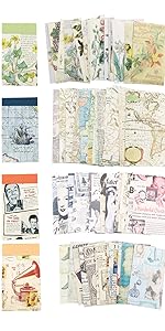 The retro scrapbook paper supplies kit includes 348 sheets. Scrapbooking supplies kit contains:1 A6 grid notebook with vintage poster book cover, 2 washi stickers, 60 note papers, 2 envelopes, 10 scrapbook papers, 10 folding labers, 10 material background papers, 5 card, 10 paper photo frames, 31 calender stickers, 179 stickers and 5 coated paper cards. A large vintage junk journal collection of all kinds of vintage ephemera junk journal goodies!