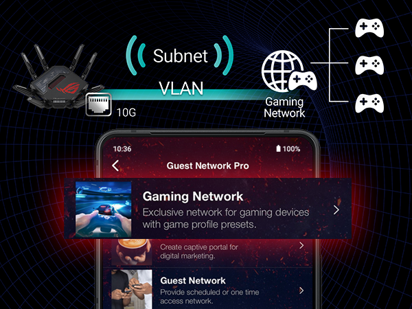 The ASUS ROG Rapture GT-BE98 Pro quad-band WiFi 7 Gaming router is beyond fast. With dual 6 GHz bands, dual 10Gbps ports, and new WiFi7 technlogies such as Multi-link Operation, achieve speeds of up-to 30Gbps and push the boundaries of whats possible in networking. Disclaimer: Actual data throughput and WiFi coverage will vary from network conditions and environmental factors, including the volume of network traffic, building material and construction, and network overhead, result in lower actual data throughput and wireless coverage.