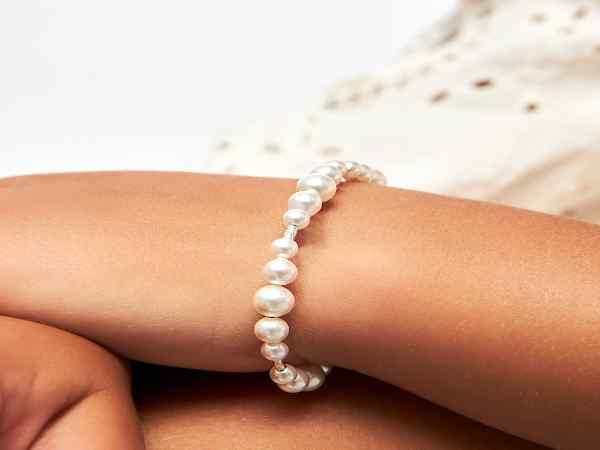EXCEPTIONAL QUALITY: Sterling silver (925) Pearl Bracelet for Girls embellished with high-end European simulated pearls Hand crafted by artisan jewelers in the USA.