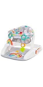 • 2-in-1 multi-position seat design; younger babies can sit comfortably in the lower position; older babies can use the upright position to sit and play
