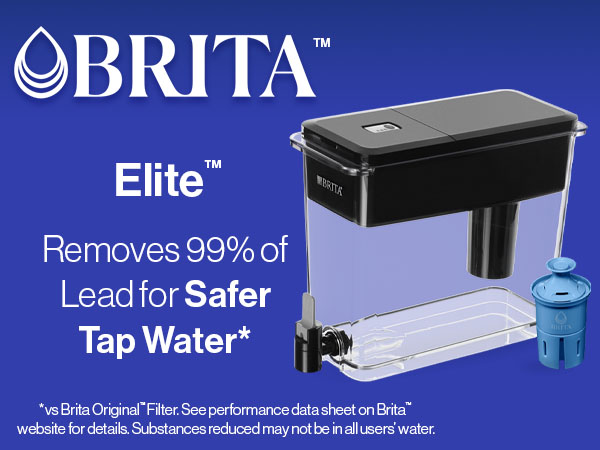 Drink healthier, great-tasting tap water with the BPA-free, large 27-cup Brita UltraMax Elite Water Dispenser. With Advanced Carbon Core Technology, the Elite filter in this water filtration system cuts the taste and odor of chlorine and reduces 30 contaminants, including cadmium, mercury, asbestos, benzene and lead, to deliver great-tasting drinking water. By switching to this Brita water purifier, you can replace 1,800 single-use plastic water bottles a year to stay hydrated, save money and reduce plastic waste. This space-efficient Brita water dispenser is fridge-friendly and features an easy-locking lid and precision-pour spigot. The electronic filter indicator lets you know when it's time for a filter change. This Brita water dispenser comes with one Elite Brita water filter, but it's compatible with both Elite and Standard water filters. For the freshest-tasting water, replace your Elite filter after 120 gallons or approximately every six months, or replace your Standard filter after 40 gallons or approximately every two months. Get great taste, less waste and more savings from Brita.