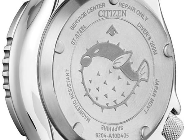 A classic never goes out of style. The newly reimagined Promaster Dive Automatic men’s watch by Citizen goes deeper into the history of the original version of this diving watch that was released in 1989 for the new generation of dive watch enthusiasts. In silver-tone stainless steel, A design element that stands out is the distinctive, serrated bezel design that was inspired by a “Fugu,” the Japanese name for pufferfish. Featuring a 3-piece, 44mm case, anti-reflective sapphire crystal, and a silver-tone stainless steel case and bracelet, the blue easy grip aluminum ring surrounds the blue dial and luminous hands and markers, while the case back features an engraving of a fugu or pufferfish. This technically advanced and stylish men’s sport watch powered by the motion of your wrist comes in an exclusive collector’s dive tank box and is ISO compliant with a screw-down crown and water resistant to 200 meters. Caliber 8204.