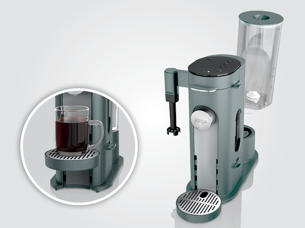 Move the cup tray up or down to reduce splashing, or remove it to accommodate up to an 8-inch-tall travel mug.