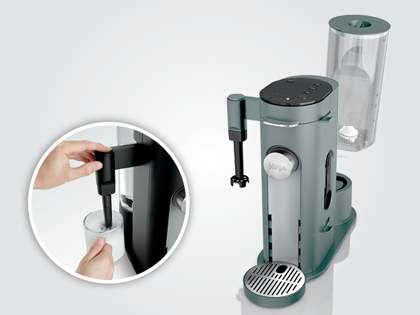 BUILT-IN, FOLD-AWAY FROTHER: Turns hot or cold milk/milk alternative into silky-smooth froth. Removable for easy cleaning.