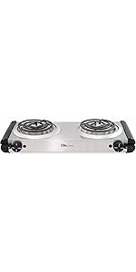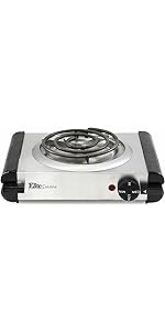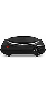 Cooking is quick, easy and consistent with the Elite Gourmet Electric Single Buffet Burner. This portable electric hot plate offers reliable heating and takes up minimal cooking space. At 1,000 watts, it heats up quickly with an adjustable temperature knob. The non-stick cast iron hot plate will ensure even cooking and makes clean up a breeze. It features adjustable temperature control with Off, Warm, Low, Medium, and High settings. The heavy duty cast-iron flat heating plate is easy to clean. The cool-touch base and non-skid rubber feet for stable cooking. It's perfect when you need an extra heat source for holiday cooking and entertaining, or simply use it to keep food warm at a buffet station.