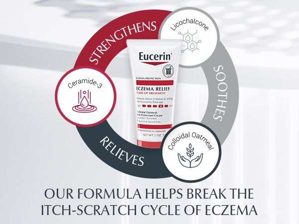 • Colloidal Oatmeal, Ceramides and Licorice Root: Eucerin Eczema Cream Flare-Up Treatment is formulated with Colloidal Oatmeal (a skin protectant), Ceramide-3 and Licorice Root Extract