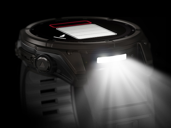 • Advanced multisport GPS smartwatch for athletes/adventurers features a 1.4” solar charged display with scratch-resistant sapphire lens, durable titanium bezel and built-in LED flashlight for after-dark visibility