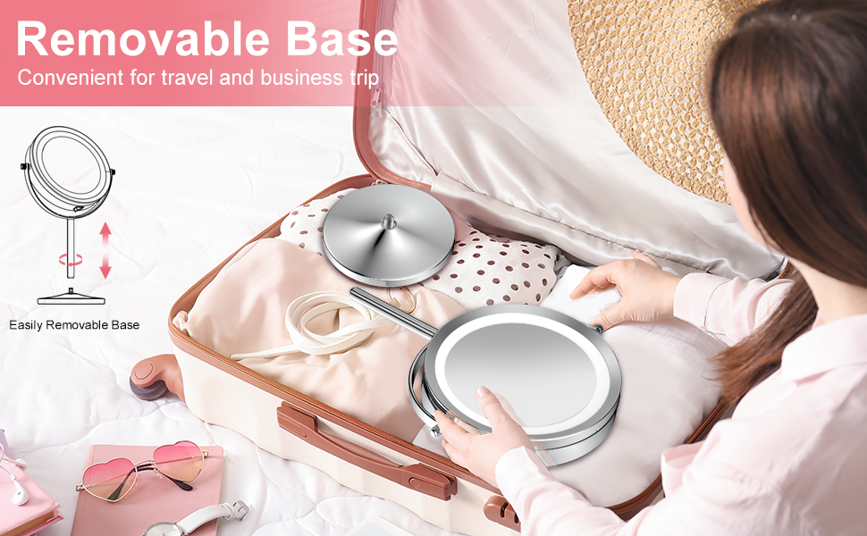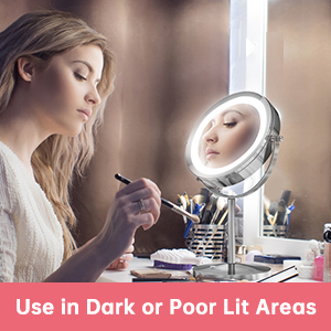 【CORDLESS PORTABLE TABLETOP MIRROR】- Compact and battery operated makes this LED vanity mirror perfect to carry around with you to your lockers, dorms, friends' houses or any table you can turn into your makeup desk! Use 4*AAA battery(Not included)