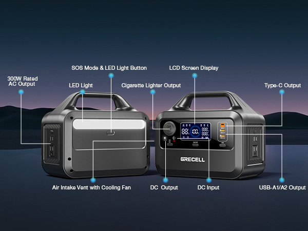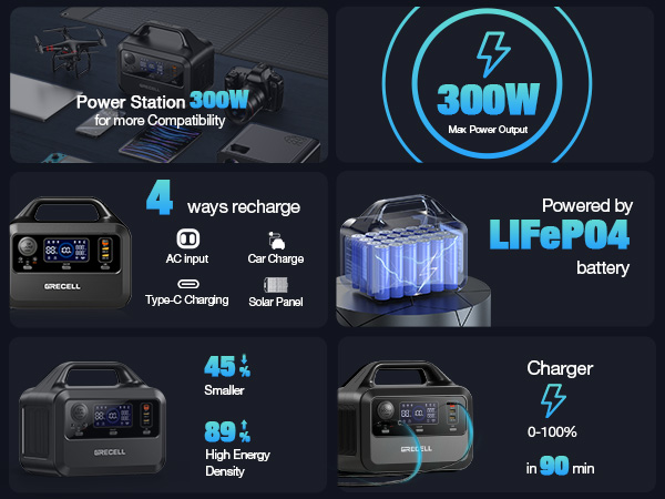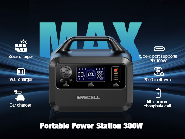 GRECELL Portable Power Station 300W | LiFePO4 (LFP) Battery