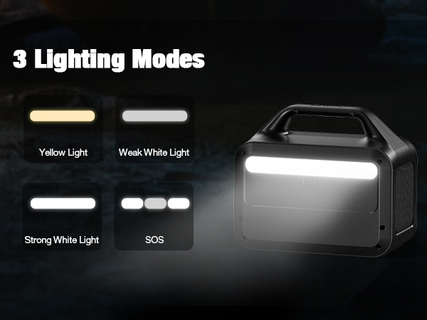 【Outdoor Assistant】 Portable Power Station is built with a 3-level brightness LED flashlight, which could emit 3 lighting modes (steady light and SOS mode) to meet your different needs. Press the LED flashlight switch to change the brightness and SOS mode. When you go out camping or experience power outages, this power supply can always help you out.