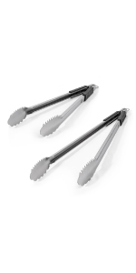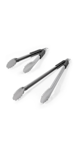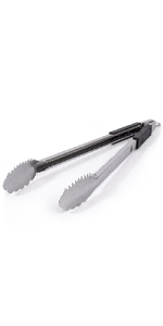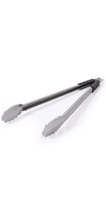 BBQ Tongs for Grilling with Dual Sided Grippers: The Grill Perfect BBQ and grilling tongs feature a dual sided design, with the teeth allowing you to easily handle large cuts of meat and roll brats, sausages or hotdogs for even cooking on all sides while the soft rounded edge is ideal for moving bread, shrimp or vegetables without mashing or tearing.