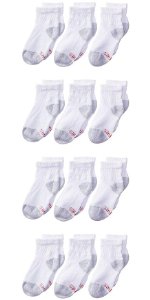 Hanes Boys' Extra Durable Cushion Ankle Socks are a comfortable and dependable addition to his all-weather wardrobe and are a great value. Constructed with a soft cotton blend, these socks have a modern ankle length that's versatile and works with both shorts and pants! Spend more time playing and less time matching with our EZSort sock matching system, which makes sorting kids' socks so much easier.