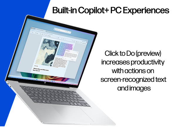 • ACCELERATE PRODUCTIVITY - Find information fast (improved Windows search), take instant action from on-screen text and images (Click to Do [preview]), remember what you've seen (Recall [preview]), and upgrade your photos (Generative Fill)