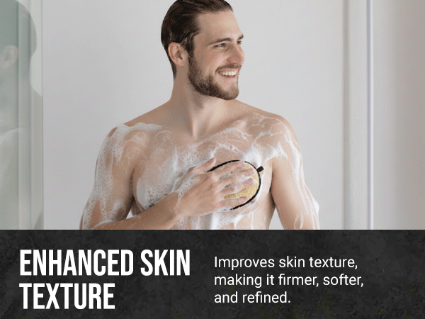 ENHANCES SHOWER ROUTINE FOR ACTIVE MEN – SKIN TEXTURE & REFRESHES: Our loofah exfoliates men’s skin, making it feel smoother and look healthier. Designed for sportsmen and hard-working men, this body scrubber clears pores, supports skin vitality, and restores a fresh, revitalized feel after a long, tough day.