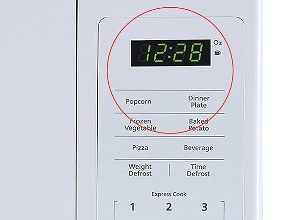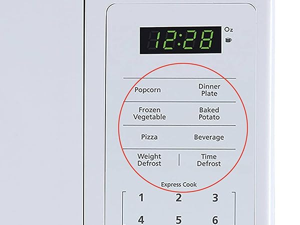 Smart Feature: Equipped with electronic controls, an LED display screen featuring a kitchen timer, express cooking functions for up to 6 minutes, and a convenient auto-defrost feature
