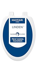 Upgrade your bathroom with the Mayfair Linden Toilet Seat, designed for convenience, durability, and a seamless fit. Whether you're replacing an old toilet seat or upgrading for comfort, this model delivers effortless maintenance and a secure installation. This toilet seat features a Whisper-Close hinge, slowly and quietly lowering the toilet seat lid and eliminating slamming and pinched finger. The Top-Tite STAY-TITE seat fastening system secures the seat so it will never loosen. A durable, scratch-resistant finish on high-gloss molded wood that resists chips and scratches, allowing you to maintain a fresh, clean look for years. A secure fit & hassle-free installation – designed to stay firmly in place, preventing annoying shifting while in use. Crafted with eco-friendly materials and sustainable wood sources in the USA, ensuring quality and reliability. The Linden Toilet Seat offers an upgrade to your bathroom with a seat that’s built for comfort, durability, and easy maintenance! Mayfair by Bemis - offering innovation for everyday life!